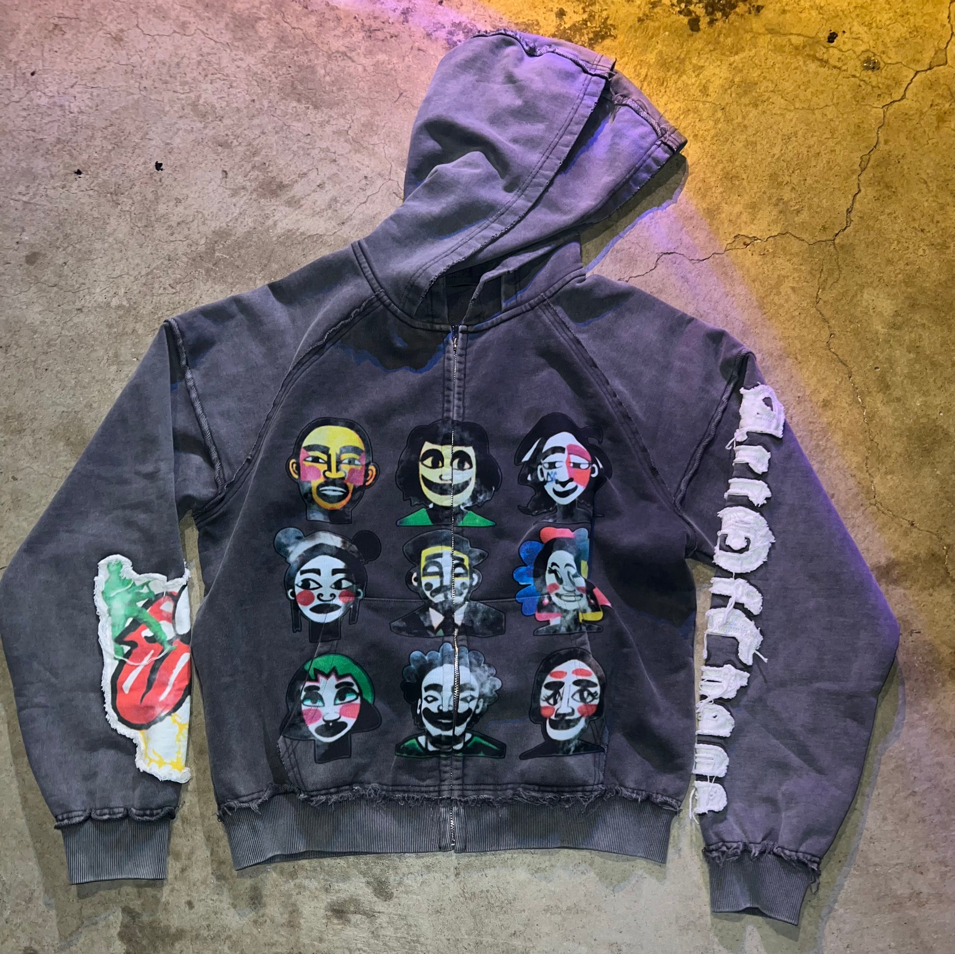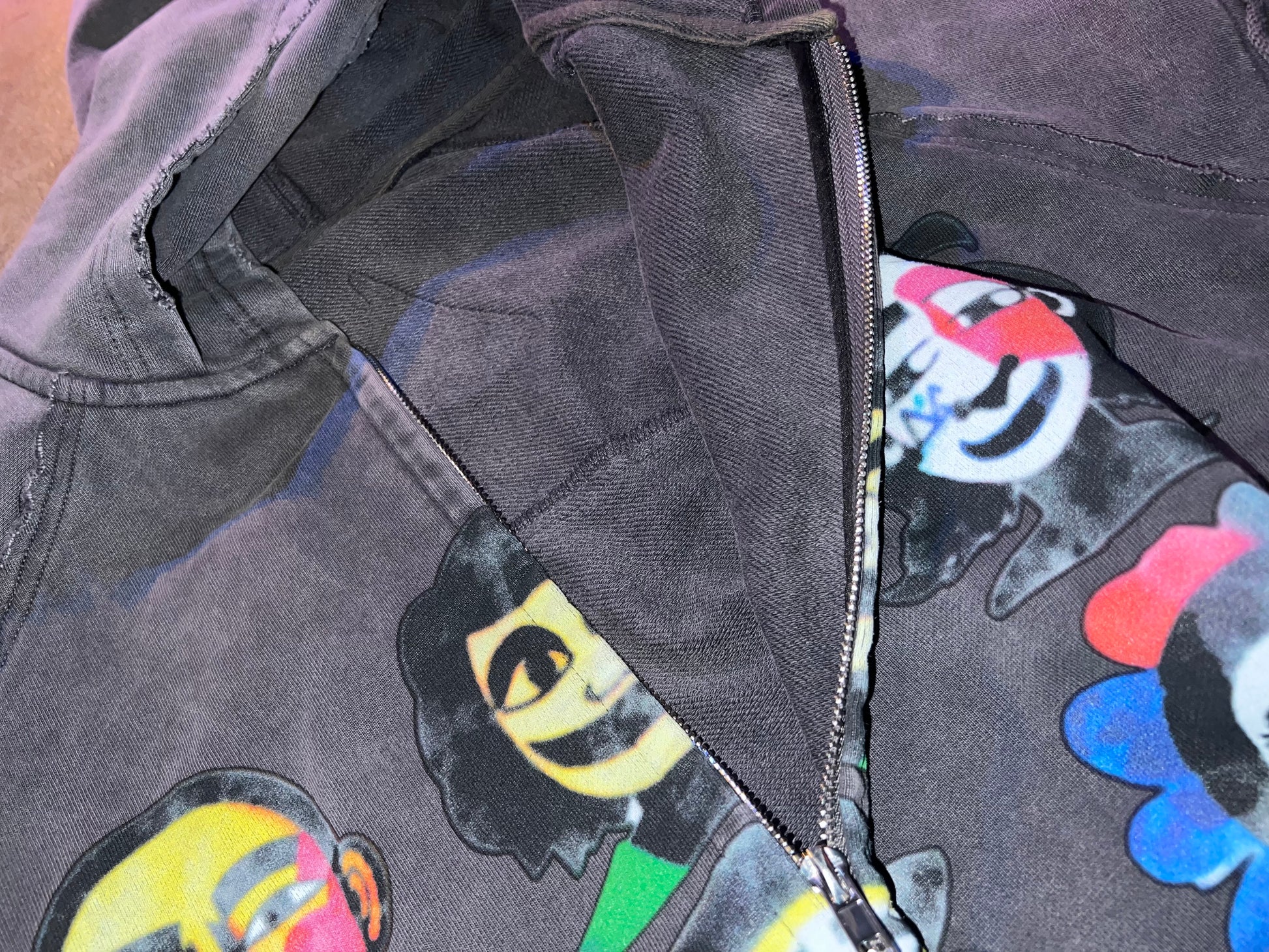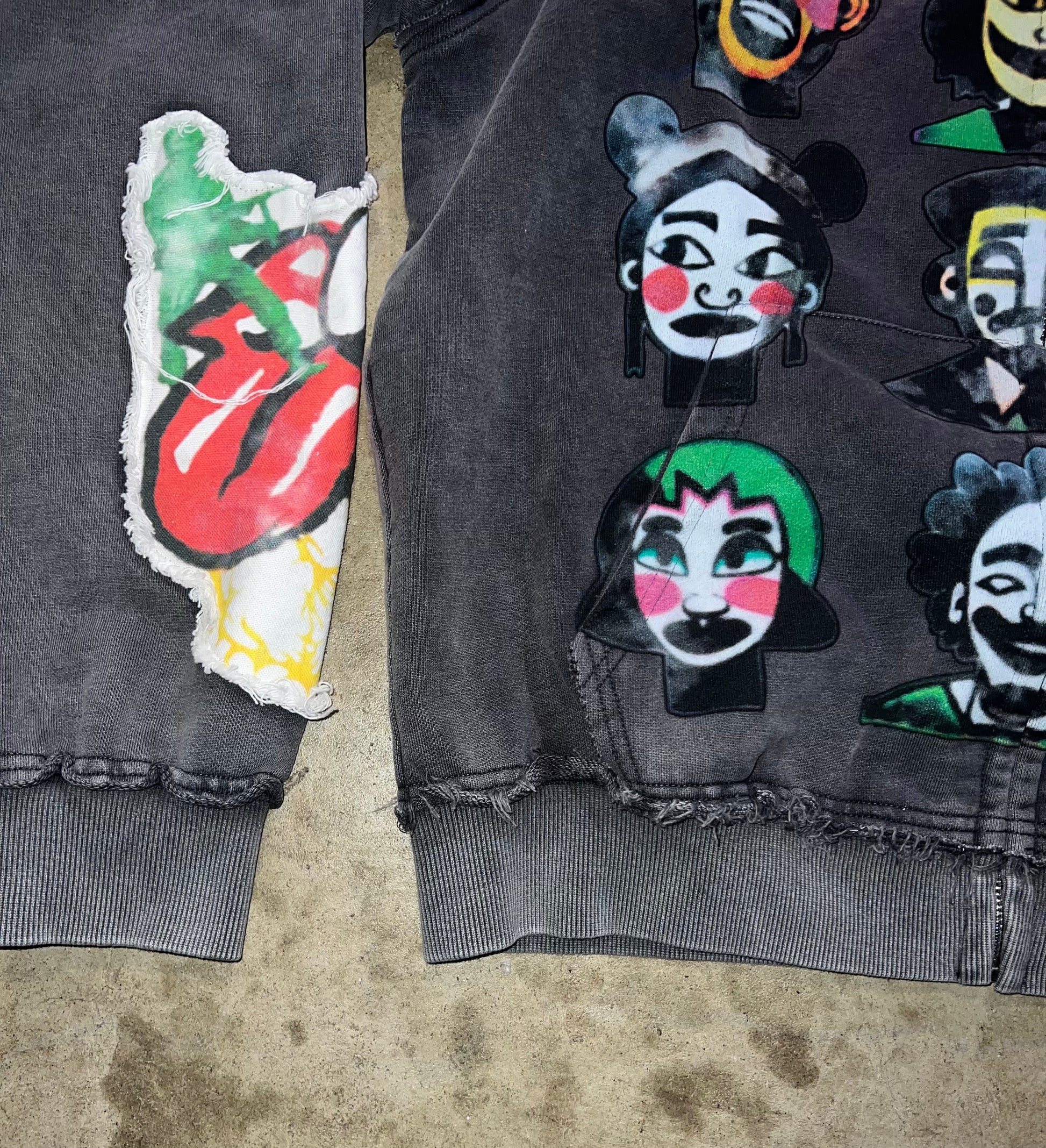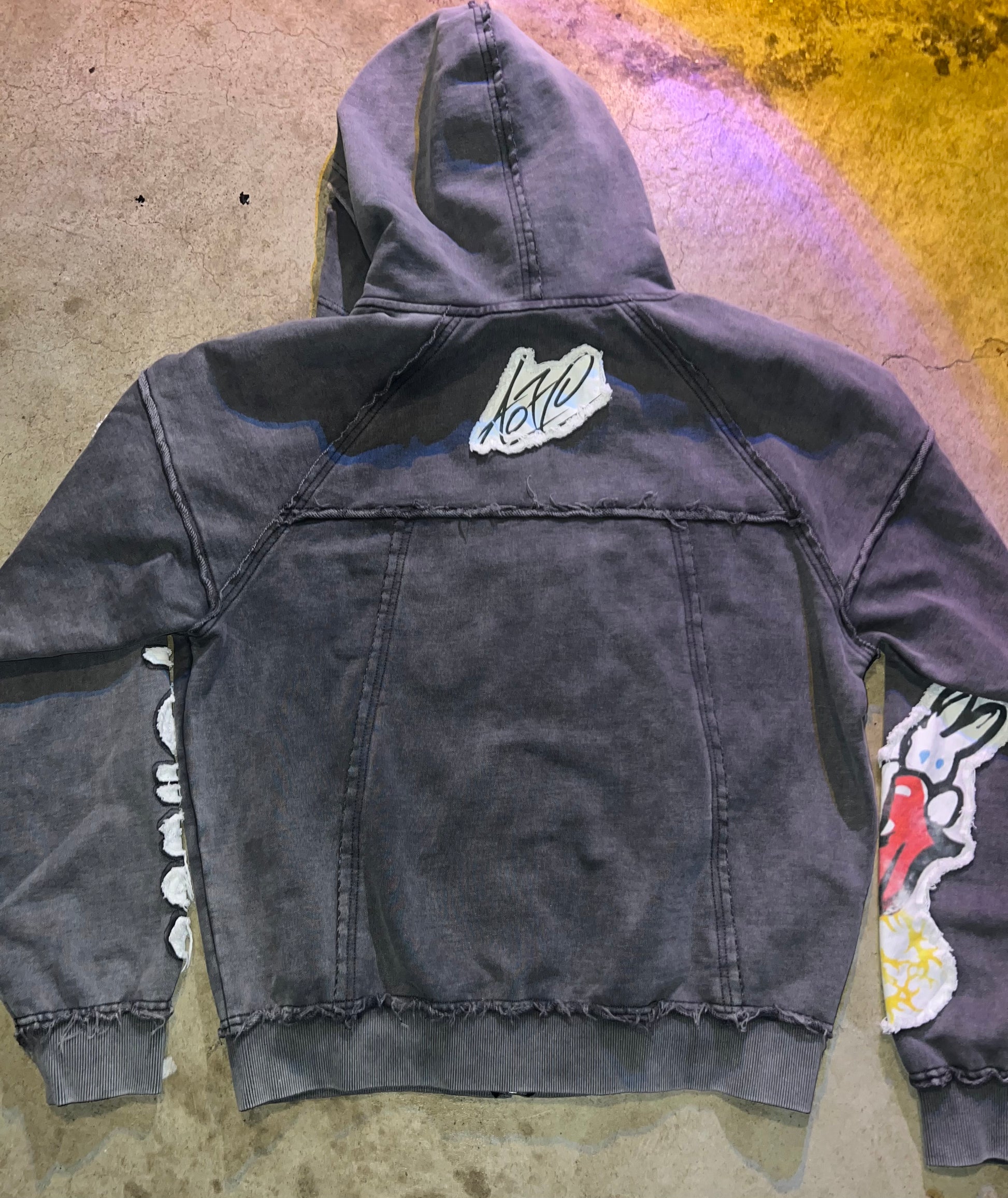 DTG print, 450gsm oversized gray stonewashed jacket with French terry inside
